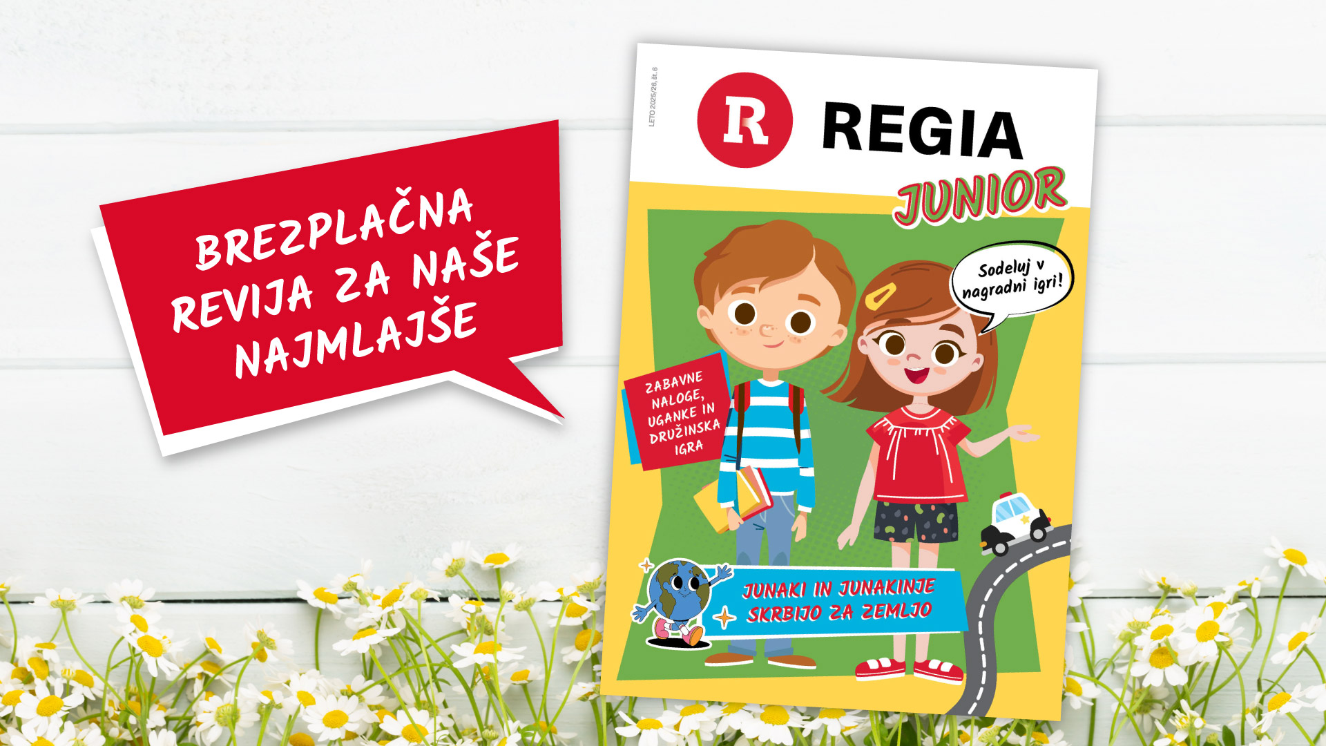 Združite prijetno s koristnim! V sklopu revije smo pripravili tudi nagradno igro REGIA JUNIOR. Spodbudite ustvarjanje in učenje svojih otrok! Vabljeni, da pobarvanko ali katerokoli drugo rešitev iz revije skenirano ali fotografirano pošljete na e-naslov marketing@regia.si ali po pošti na REGIA GROUP d.d., Vodovodna cesta 93, 1000 Ljubljana, s pripisom “za marketing”.