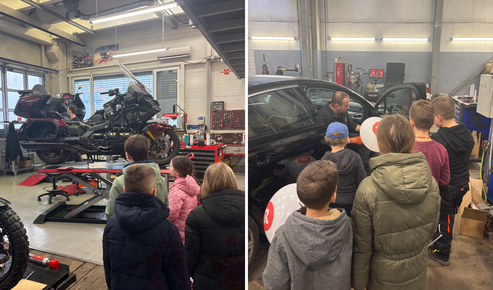 Starši so v preprostem jeziku predstavili svoj tipični delovni dan, pokazali delovne pripomočke in odgovorili na otroška vprašanja. V varnem okolju je sledil še kratek ogled delovnih prostorov, od servisnih postopkov in pregleda vozil do pisarn, skladišča motorjev in arhiva.